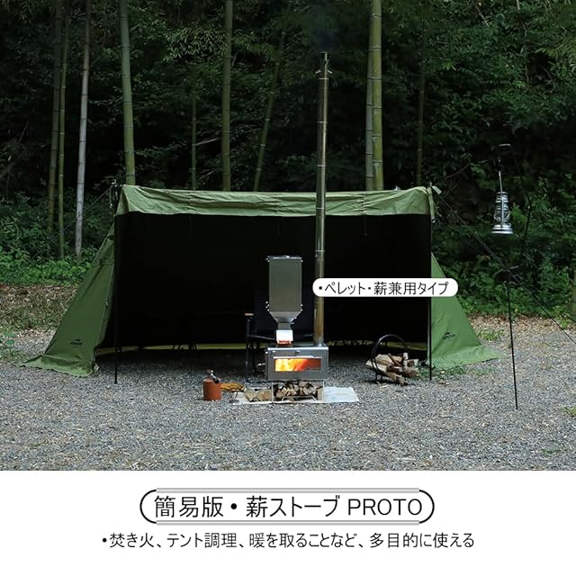 Soomloom薪ストーブPROTO簡易ペレット・薪兼用ストーブステンレス鋼コンパクトテント調理バーベキューBBQ焚き火煙突付きポータブルキャンプアウトドア暖取り