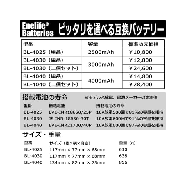 Enelife マキタ 互換 バッテリー 40V シリーズ 日本メーカー保証 長寿命電池搭載 電池残量表示機能 5億円製造物責任保険付 (4000mAh/単品(BL-4040)