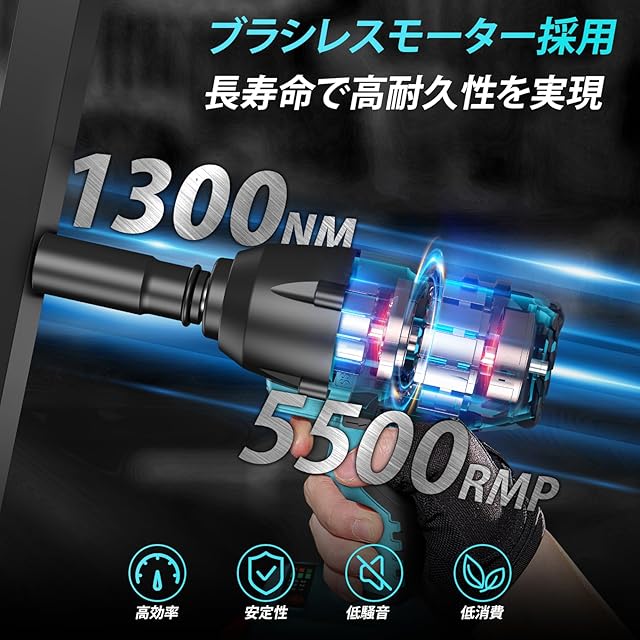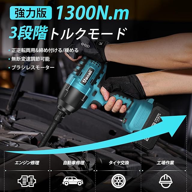 【2025強化版の電動インパクトレンチ】1300N.m のトルクと最大 5000rpm の速度を備えているため、さまざまなナットやボルトを簡単に締めたり緩めたりすることができます。自動車の修理、タイヤ交換、ホームメンテナンス、家具の組み立て、農作業の機械修理、DIY プロジェクト、大規模な建設プロジェクトなど、様々な用途に適用することができます。