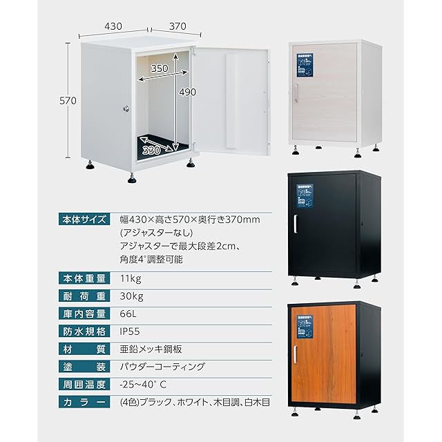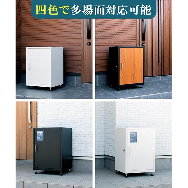 【機能性充実、面倒な組み立て不要、設置しやすい】弊社製屋外宅配 ボックスは工場で組み立て済みの完成品のままでお客様のところにお届きします。扉は両開きに対応しております。アジャスターも付いていて、傾斜地に対応しております。弊社宅配ボックス屋外仕様で亜鉛メッキ鋼板にパウダーコーティングして、防水、防塵性能は抜群です。折りたたみ式の宅配ボックスと比べたら、崩れることがなく、耐用性は比べ物ならないほど高いです。また盗難防止や台風や地震など災害時転倒防止用のアンカー、ワイヤー取り付けリング、ワイヤリング用鍵も付いております。