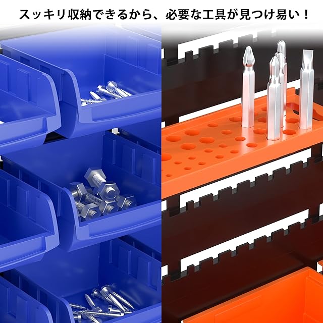 【高品質素材&省スペース】強固で軽いプラスチックを採用しており、優れた耐久性と耐衝撃性を兼ね備え、長年使っても壊れる心配はありません。作業用の工具を種類、サイズごとに分けられ、壁に取り付けてキレイに整頓することができ、スペースの節約にも役に立ちます。