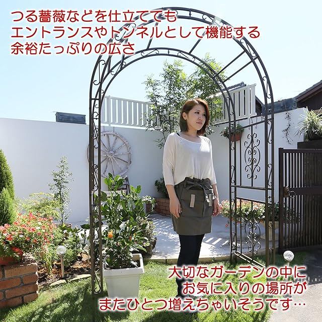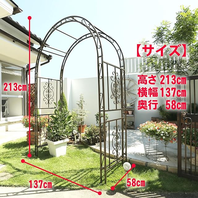 ガーデンガーデン ゴージャスアイアンアーチ 高さ213cm×幅137cm×奥行58cm 立体構造 ブロンズブラウン IPN-7973-BRZ