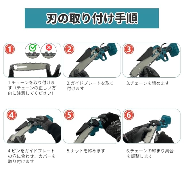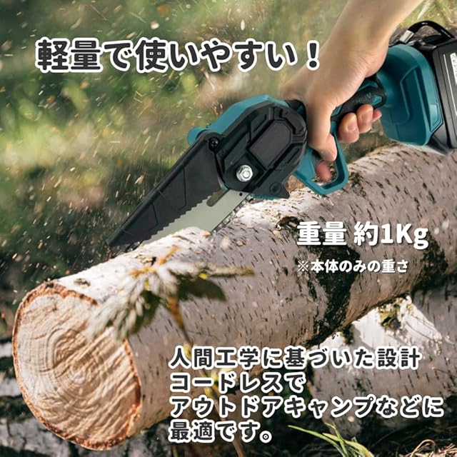 マキタ (Makita) バッテリー 対応 コードレス チェーンソー 6インチ チェンソー 電動 ノコギリ 14.4V 18V 使用可能 互換 充電式 電動工具 日本語説明書 バッテリー 別売り (本体替刃セット(Blue))