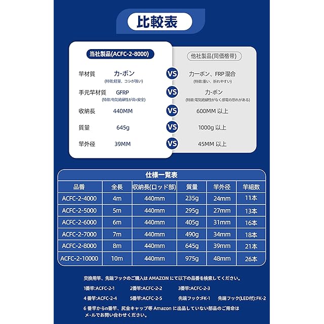 ケーブル索引具- 通線工具 伸長8m 伸縮 引っ掛け棒 配線竿 電工竿 内層日本製カーボン 炭層繊維採用 点検口 天井裏 OAフロア 狭い空間の配線に最適 先端蓄光タイプ コンパクト 軽量 AURORE(オーロレ興業 京都) ACFC-2-8000