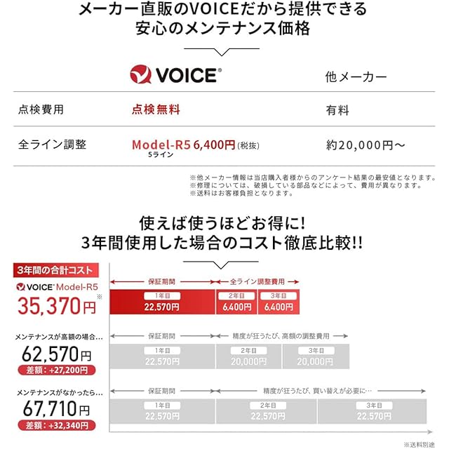 ✅【 全ては安心してお使い頂くため 保証後のメンテナンス費用を公開している 唯一のメーカーです 】 レーザー墨出し器を使用しているユーザーはご存知だと思いますが、保証後にメンテナンス費用を公開しているメーカーはありません。VOICEでは、ユーザーが安心して購入・使用できるようにアフターメンテナンス費用を公開させて頂いております。