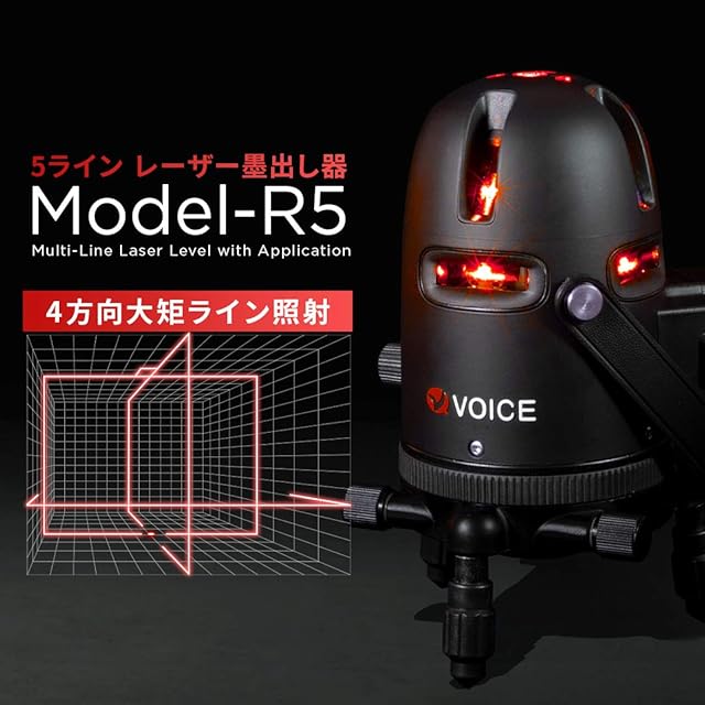 VOICE レーザー墨出し器 5ラインレーザー Model-R5 メーカー 4方向大矩ライン照射モデル アプリからの遠隔操作 タッチスイッチ