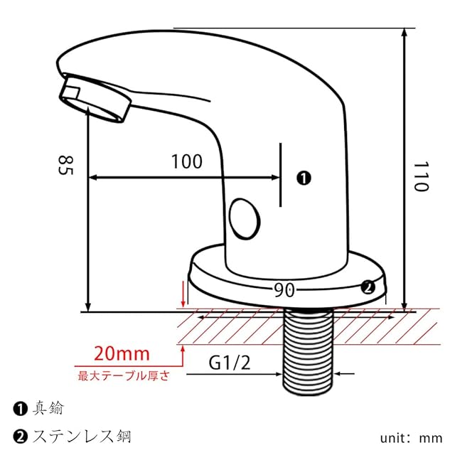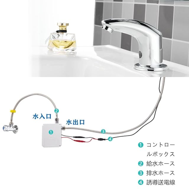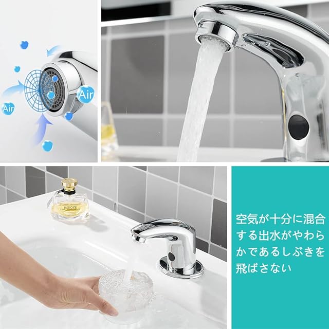 【赤外線センサー】★自動誘導:手が検知範囲内に入ると自動的に水が出ます。手を離せば自動で水が止まります。★タイムアウト保護:60秒自動断水機能を洗濯し、異物が感知範囲内で長時間水資源の浪費を避ける。