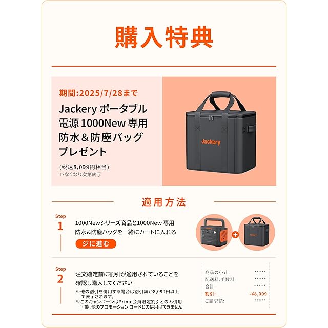 7月8日 (火) 0時から7月28日(月)までの期間中に、1000Newシリーズ商品と1000New専用収納バッグを一緒にカートに入れると、収納バッグが無料に購入可能です。収納バッグお送りキャンペーンは他のプロモーション コードとの併用はできません。詳しくのは「割引特典を得るには」をクリックしてご確認ください。【特典の収納バッグをお忘れの場合は、カスタマーサービスまでご連絡ください。】