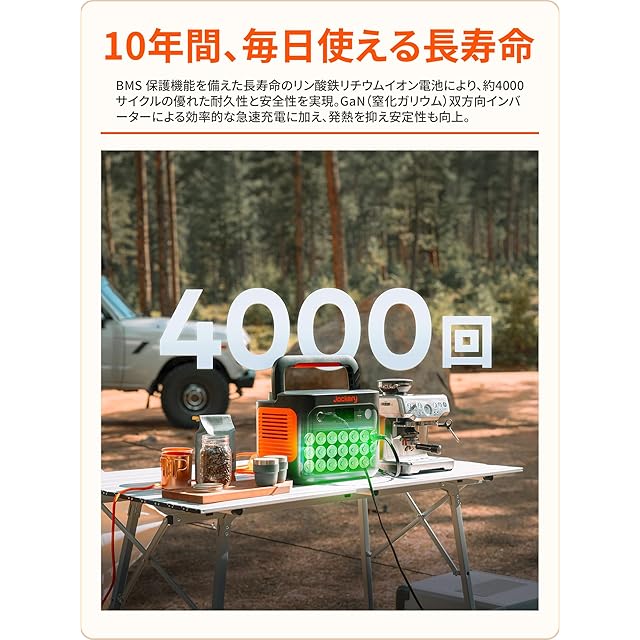 【定格出力1500W、容量1070Wh】60万人に選ばれたJackery大人気1000モデルの後機器、コーヒーメーカー(1120W)、ポータブルエアコン(1000W)、電子レンジ(960W)、ケトル(850W) などの家電製品にも対応できます。ドライブ、キャンプ、家族旅行、非常用、防災用に多用途。