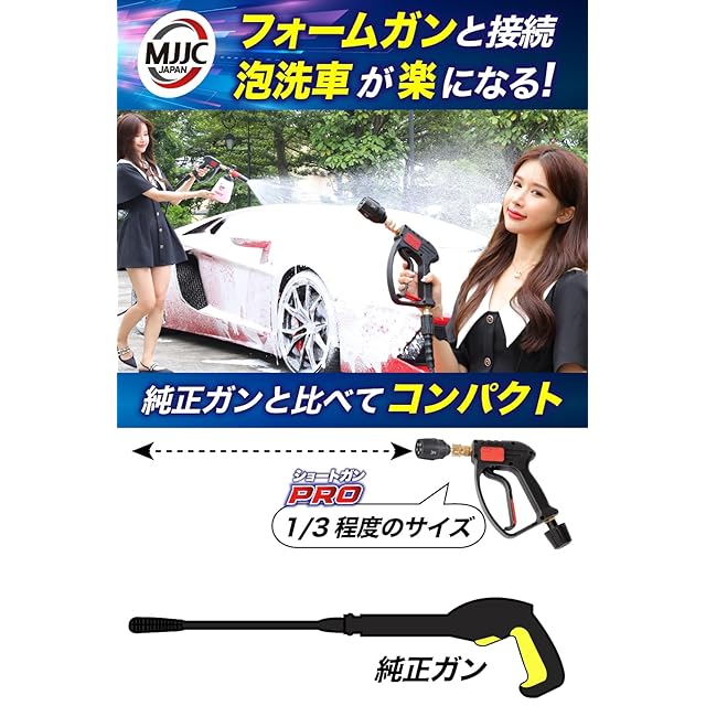 新登場!MJJCショートガンPRO✨バージョンアップでスイベルが付属しました✨MJJCフォームガンと組合せて使用すれば泡洗車が楽になる♪こちらの製品は、ケルヒャーKシリーズ高圧洗浄機の「クイックコネクトホース」に対応したショートガンです。(✅クイックコネクト接続部が「真ちゅうタイプ」のホースでの使用を推奨。【注意】クイックコネクト接続部が「プラスチックタイプ」の場合、経年劣化によりツメ(凹凸)が削れている場合は接続できません。クイックコネクト採用前の古い機種のホースには接続不可。OC3、KHB5、業務用HDシリーズは接続不可。)