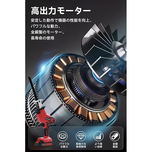 【片手操作で快適なレシプロソー作業】 軽量かつコンパクトな設計で、レシプロソーを片手で簡単に操作可能。高性能モーターを搭載しており、木材・金属・プラスチックなどさまざまな素材をパワフルに切断できます。家庭でのDIYからプロの現場まで幅広く活用できます。
