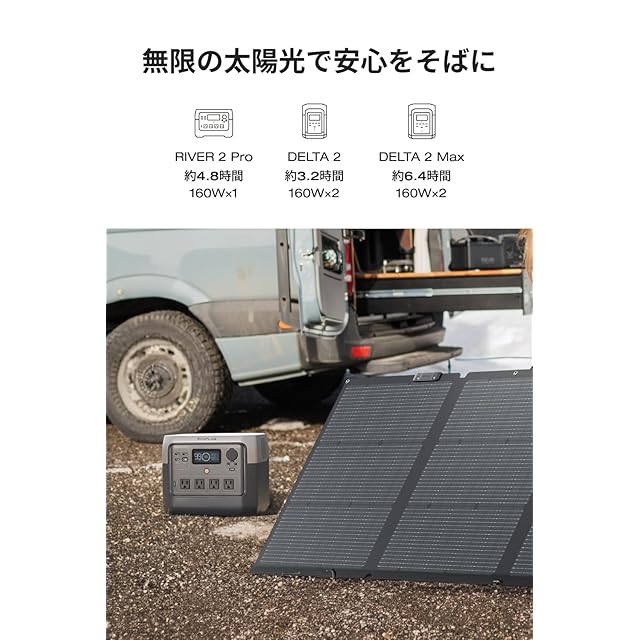 EcoFlow 160W片面ソーラーパネルGen2 ソーラーチャージャー N型ソーラーセル 単結晶シリコン 25%高変換効率 片面式 高出力 ソーラー発電 ソーラー充電器 太陽光発電 ポータブル電源充電器 IP68防水防塵 エコフロー 折りたたみ式 ベース取らない 持ち運びに便利 アウトドア 防災グッズ