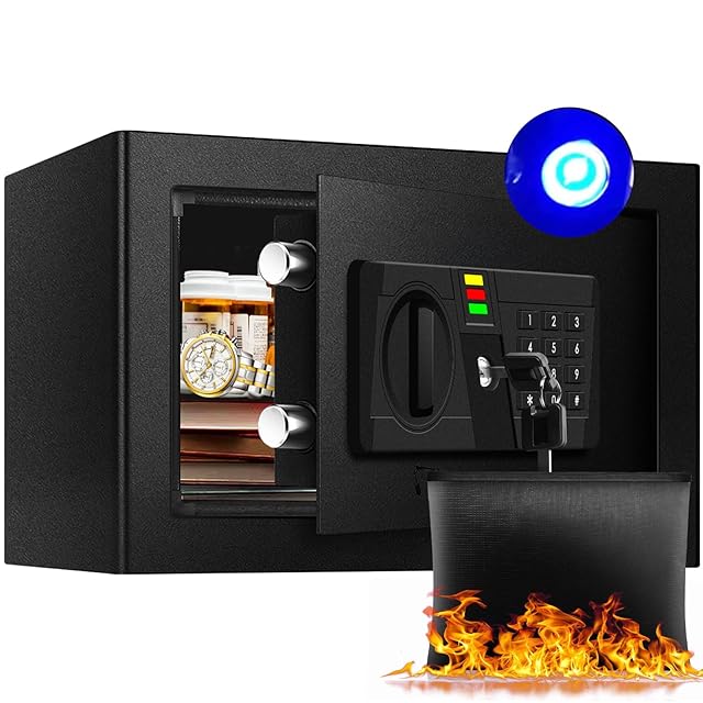【幅広い用途】:15Lの小型金庫 (奥行×幅×高さ:20×35×25cm)、食器棚、ワードローブ、ベッドサイドテーブルに簡単に隠すことができます。 金庫には、重要な書類を収納するための耐火ポケットが付いています。 安全。現金、郵便、小切手、書類、書類、出生証明書、社会保障カードなど、事実上すべての貴重な資産と財産を保護します。