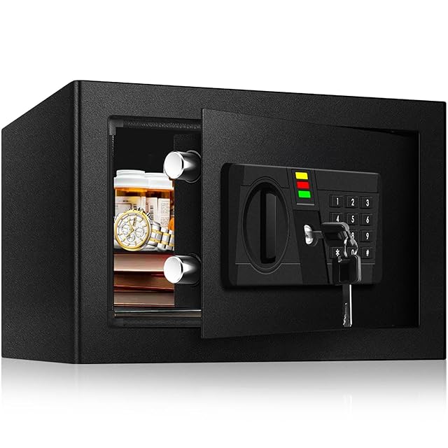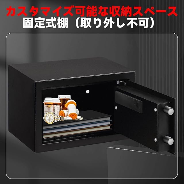 安全【取り外し可能な棚】: 取り外し可能な棚は汎用性の高い柔軟性を提供し、異なるアイテム用に別々のコンパートメントを作成したり、大きな貴重品を収納するためのスペースを最大限に活用したりできます。 様々なサイズのアイテムに対応するように棚を調整または取り外すだけで、効率的な整理と便利なアクセスが可能になります。
