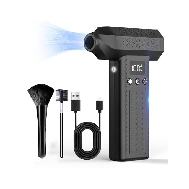 【300,000RPMターボモーター】独自開発のターボ風路設計と300,000回転/分の超高速ブラシレスモーターを採用。120m/sの業界トップクラス風速で、落ち葉・積雪・水滴・微細粉塵まで一瞬で吹き飛ばします、洗車に使える強力ブロワー。キーボードや電子機器のほこり除去に最適で、家庭・オフィス・車内での使用にぴったり。時間と労力を節約し、快適なクリーニング体験を提供します。