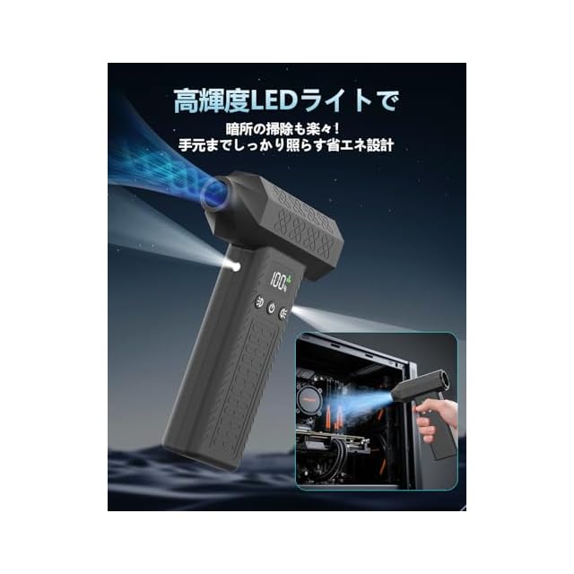 電動エアダスター 300,000RPM 120m/s超強風 エアダスター 3段風量調整 洗車ブロワー 大容量バッテリー 10000mAh 連続200分使用可能 LCDディスプレイ搭載 2個LEDライト付き AI省エネチップ搭載 洗車/車内/PC/キーボード/カメラ掃除/落ち葉の吹き飛ばし 日本語取扱説明書