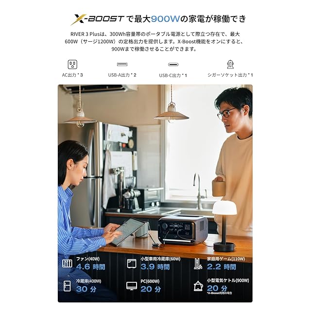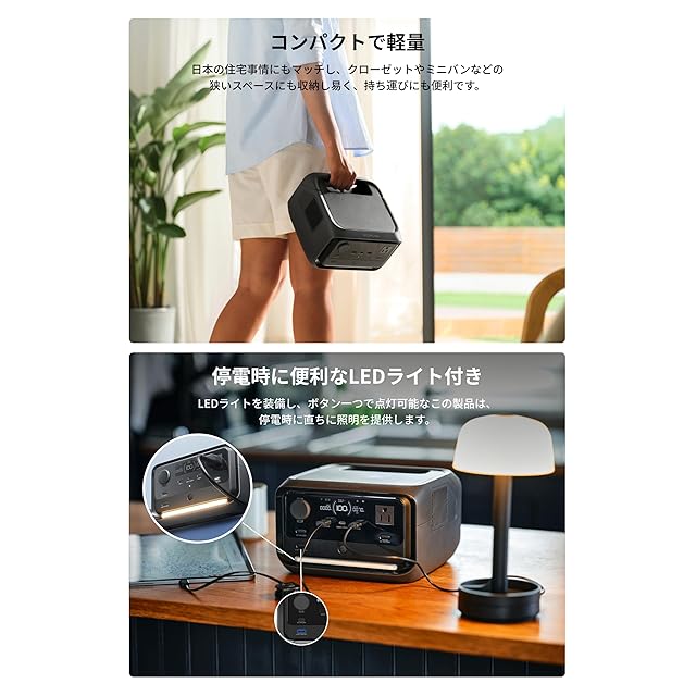 【定格出力600W】RIVER 3 Plusは、300Wh容量帯のポータブル電源として際立つ存在で、最大600Wの定格出力を提供します。さらに本体にはライトが内蔵され、停電時でも明かりを確保できます。アウトドアや防災問わず、RIVER 3 Plusがあれば、電力の不安なく、自由なひとときを存分に楽しむことができます。