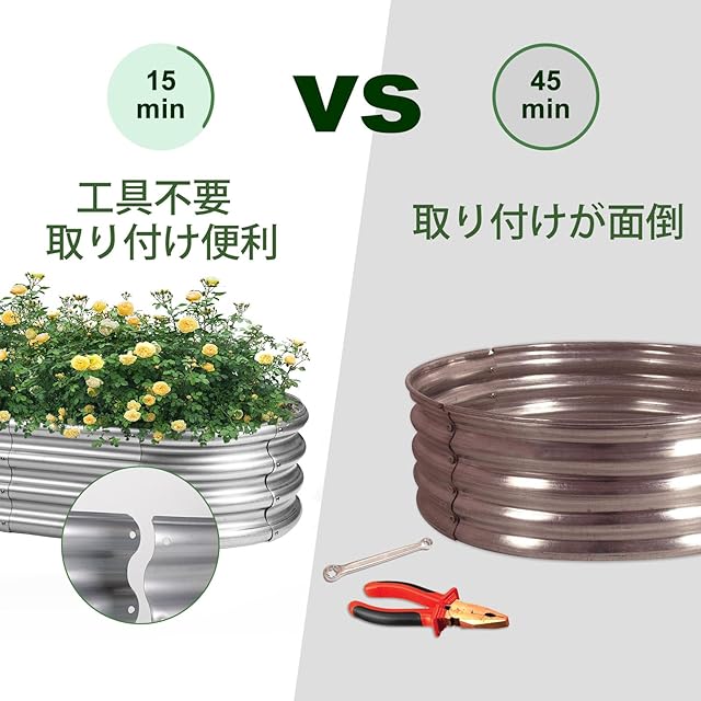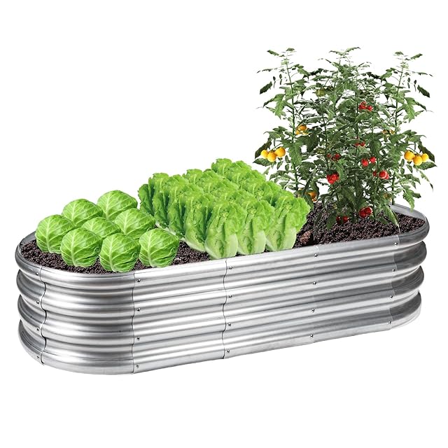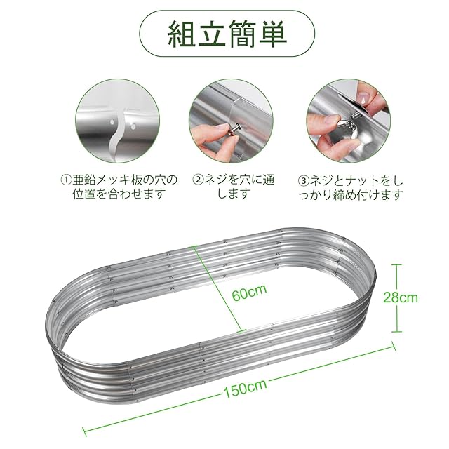 DEWEL レイズドガーデンベッド 亜鉛メッキ プランターボックス 金属製 ガーデンベッド ガーデンボックス プランター 工具不要 屋外 野菜用 植物 花 (シルバー, 150x60x28cm)