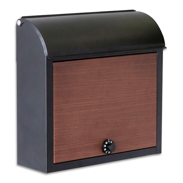 ottostyle.jp ダイヤルロック式 メールボックス 幅38cm×奥行き14cm×高さ37cm スチール 壁掛け 郵便ポスト 郵便受け 【ブラック × 木目調】