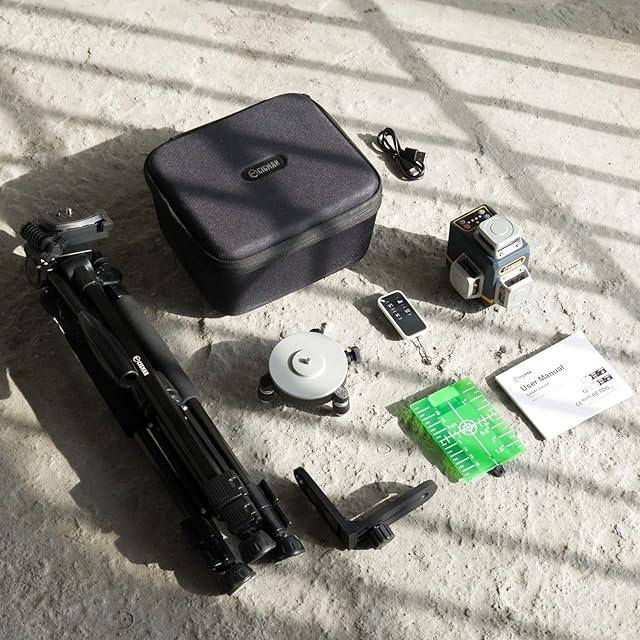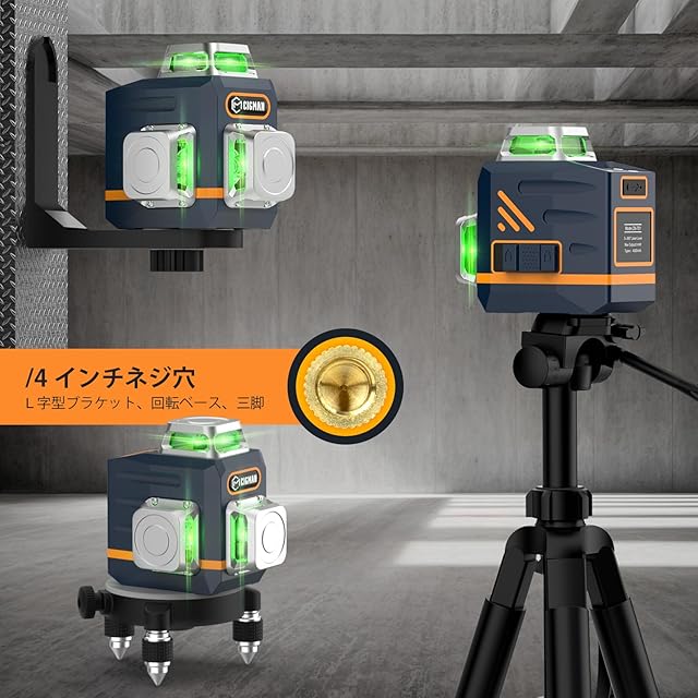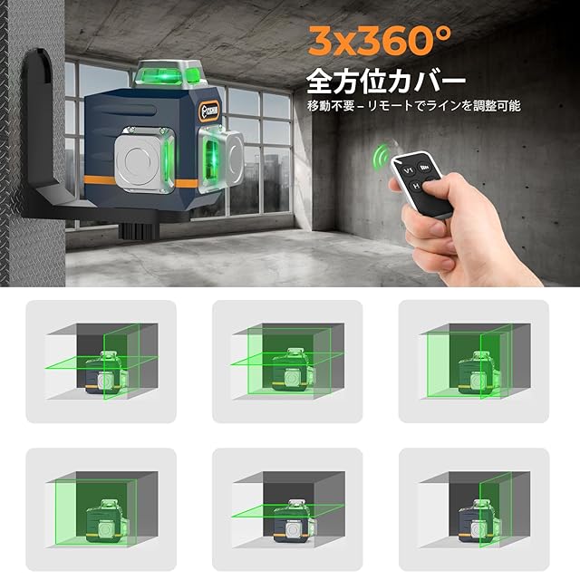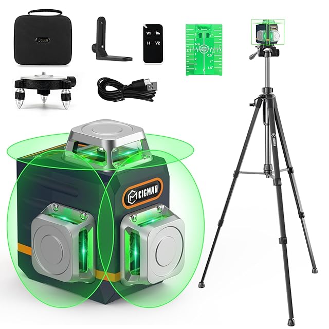 CIGMAN 3D レーザー墨出し器 三脚付き リモコン遠隔操作 小型 3×360° 12ライン水平器レーザー 4000mAh充電式バッテリー 回転ベース 輝度調整可能 DIY 建設作業者 ホーム改善に最適