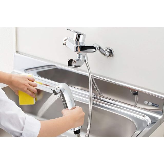 LIXIL(リクシル) INAX キッチン用 壁付浄水器内蔵シングルレバー混合水栓 ハンドシャワー付 エコハンドル 凍結防止水抜き仕様 RJF-865YN