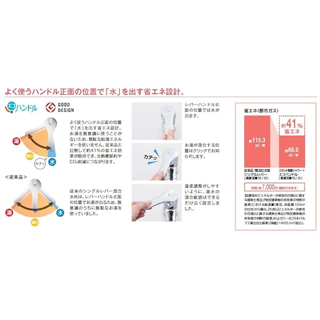 エコハンドル:よく使うハンドル正面の位置で「水」を出す省エネ設計