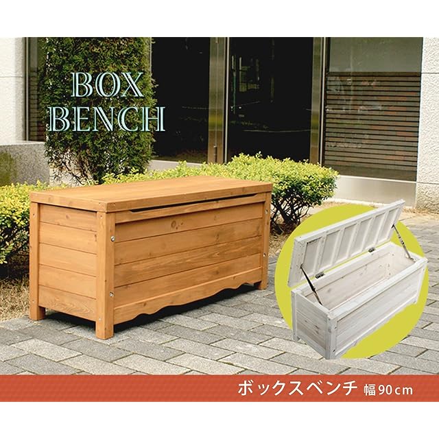 ガーデンガーデン 天然木製ボックスベンチ(ストッカー) スモールサイズ ライトブラウン 幅90cm×奥行33cm×高さ40.5cm BB-W90BR