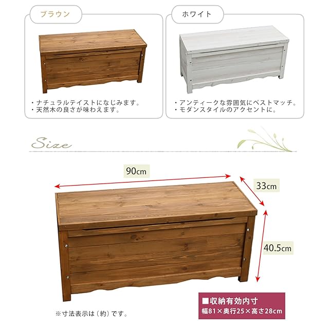 サイズ: 幅90cm×奥行33cm×高さ40.5cm (内寸) 幅81cm×奥行25cm×高さ28cm