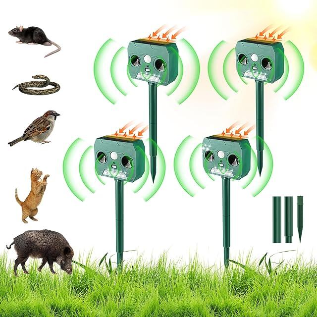 DODOGOD 動物撃退器 猫避け対策 動物撃退器 【2024新モデル】害獣撃退器 効果絶大 13KHZ-50KHZ 超音波スピーカー ソーラー充電 赤外線センサー 12m感知範囲 猫 よ け 対策 鳥避け 猫避け 害獣撃退 糞被害 鳥害対策 IP65防水防塵 超長待機 差し込み&壁掛け型の両用 (4個セット)