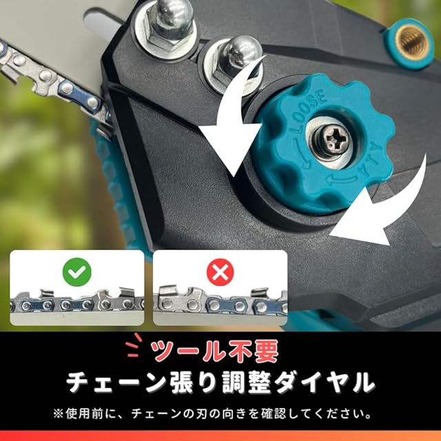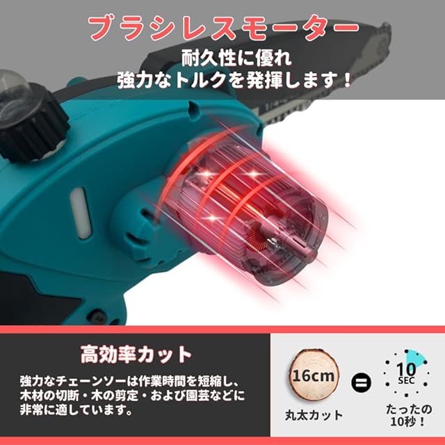 ✅【ハイパワーブラシレスモーター搭載】560m/minの高速チェーンスピードを実現。最大切断径20cmに対応し、太い丸太も素早く切断可能。効率的な作業を実現するブラシレスモーターは耐久性と信頼性も兼ね備えています。