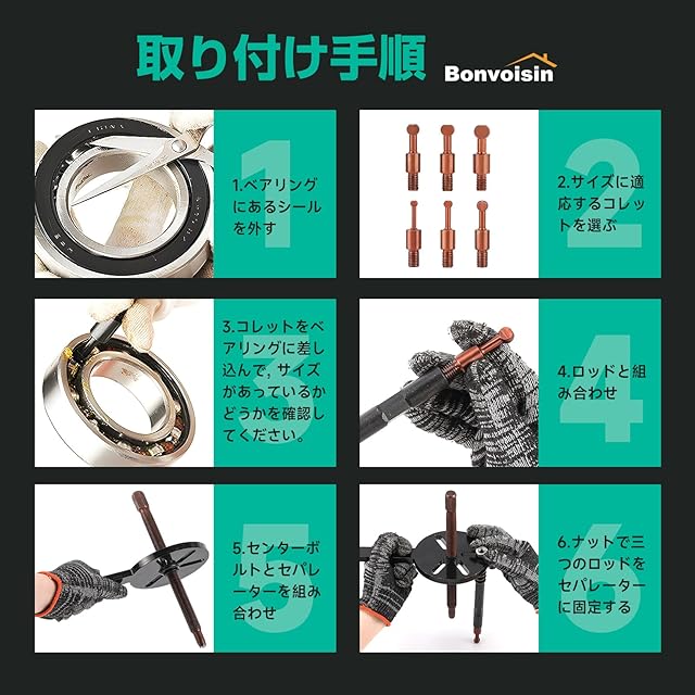 【整備作業を効率化|DIYにも最適】自動車・バイク・自転車・ギア・トランスミッションなどのベアリングの取り外し作業を簡単・安全に行えます。プロだけでなくDIYユーザーにもおすすめ。 【ご注意】錆を防ぐため、製品の表面には油が塗布されており、商品汚れ・不良などではありません。予めご了承くださいませ。