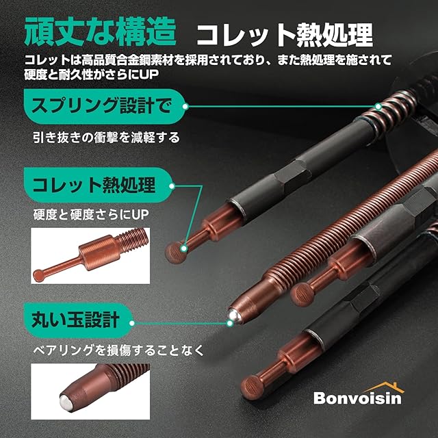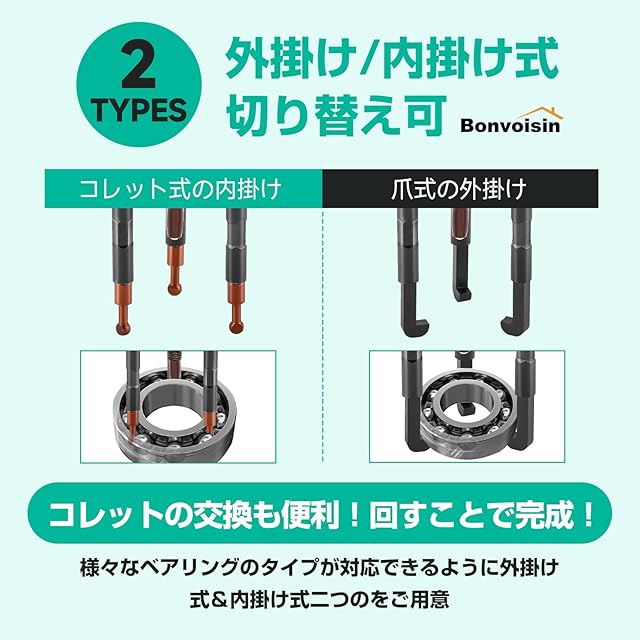 Bonvoisin ベアリング分解プーラー 内穴プーラー取り外し工具 プーラー ベアリング セット ベアリングプーラー ベアリング外し 取り外し 工具 3本爪付き 内掛け 自動車 整備工具 ケース付き 日本語説明書付き
