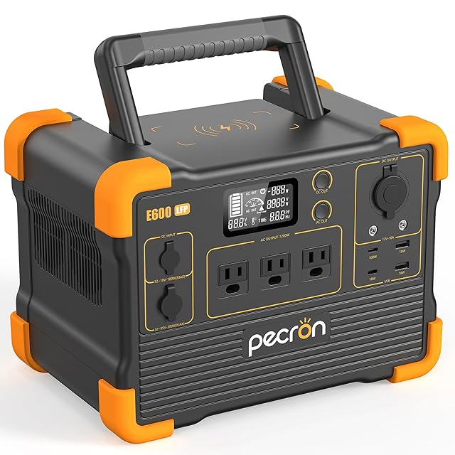 PECRON ポータブル電源 E600LFP リン酸鉄 1200W / 614Wh 小型 大容量 AC定格1200W(サージ2400W) ポータブルバッテリー 蓄電池 急速充電 軽量 高耐久 パススルー MPPT ソーラー充電 純正弦波 PSE認証済 BMS安全管理 車中泊 アウトドア キャンプ 非常用電源 停電対策 防災 50/60Hz対応可 (E600LFP)