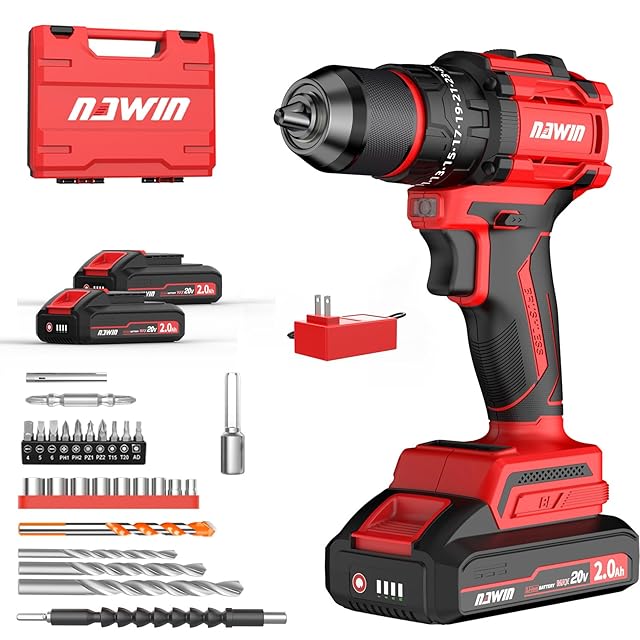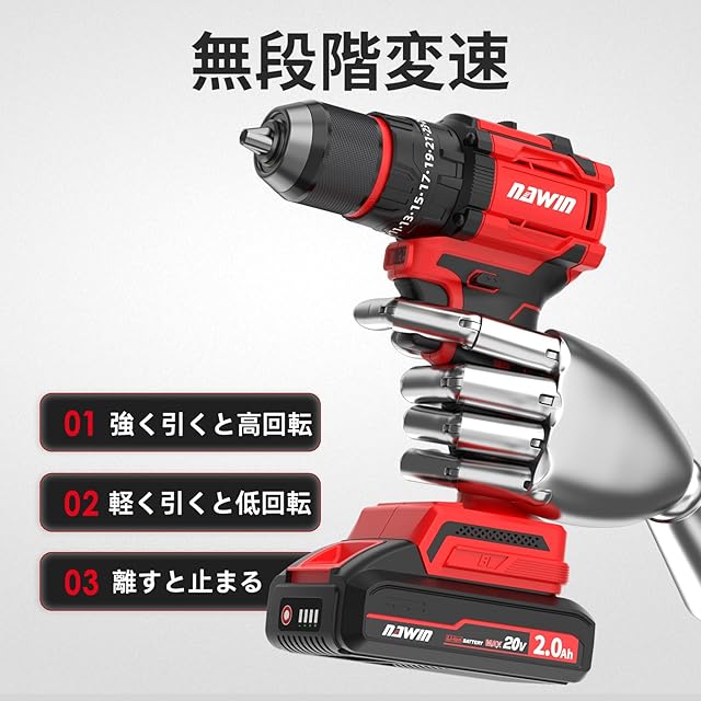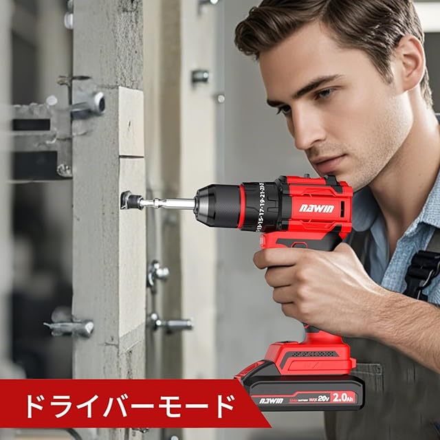 【2025新型】ナウィン 電動ドリルドライバー 電動ドリル 振動ドリル 充電式ドライバドリル コードレス 2.0Ah電池2個付 穴あけ・ネジ締めに ブラシレスモーター 無段変速 正逆転 20+3段クラッチ調整 高輝度LED照明 豊富な付属品 取扱説明書 収納ケース (50N.mモデル)