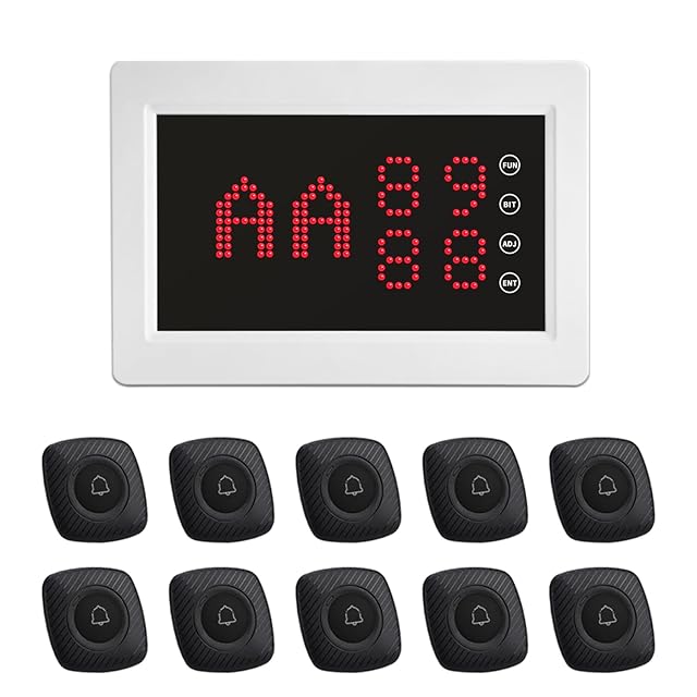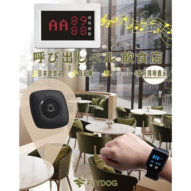 FLYDOG ワイヤレス呼び出しベル 飲食店 業務用スタッフ呼び出しベル ワイヤレスチャイム お客様のスタッフ呼び出しに 店舗 飲食店 介護施設 スタッフ 呼び出し 呼鈴 顧客 介護者 患者用 [本体(200D)+子機10台-M1(BB3)]