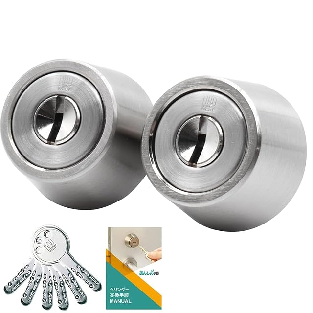 MIWA(美和ロック) LSP+LSP シリンダー錠 鍵 交換用 WEST916 ディンプルキー 玄関ドア 自分で シルバー(ST色) 2個同一 交換手順書付 PESP TE-0 LE-0 QDC