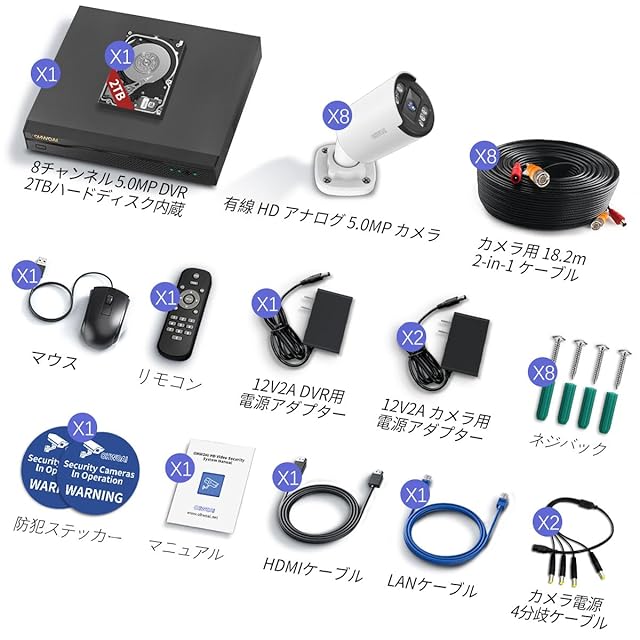 ✅{高解像度5MP} 当社のCCTVカメラは500万画素の解像度で、卓越した鮮明さと詳細を提供します。この高い画素数により、シャープで鮮明な画像が得られ、監視能力が向上します。屋内外の空間を監視する際にも、5MPの解像度は重要な詳細を正確に捉え、優れたホームセキュリティ監視を実現します。