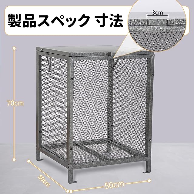 Rxakudedo ゴミ箱 屋外 屋外ゴミ箱 ゴミネット ボックス 蓋あり からす除け (長さ50 幅50 高さ70CM)