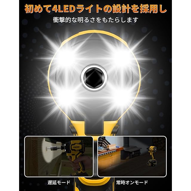 ✅[圧倒的な明るさ]EWORKシリーズ製品で初めて超高輝度4LEDライト設計を採用!遅延モード: トリガーを放すと、10 秒の遅延後に 4 つの LED が消灯し、影のない視認性が得られます。 常時点灯モード:暗い作業場を明るくするランプとして使用可能!
