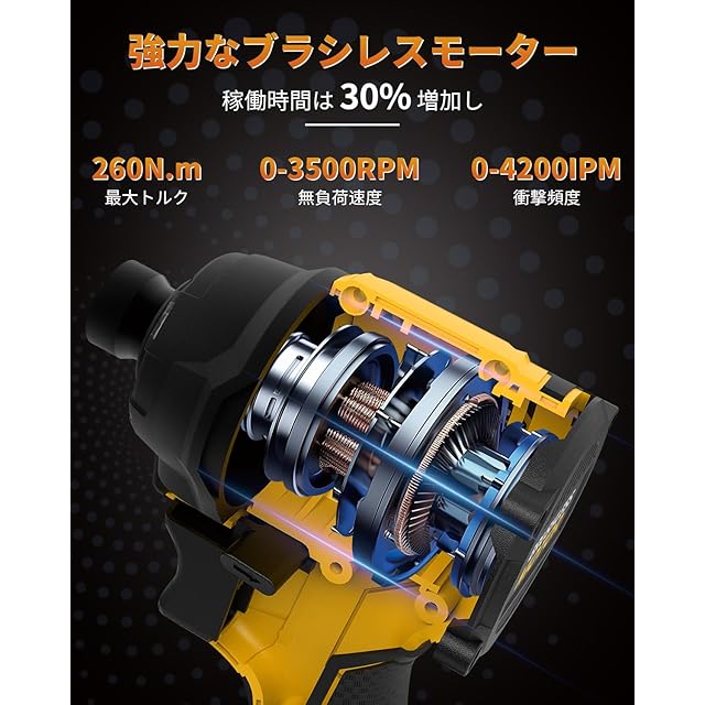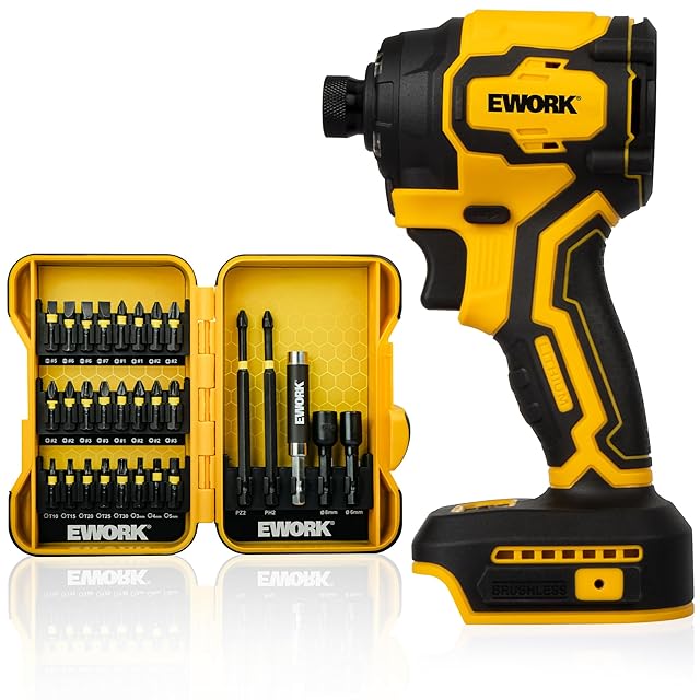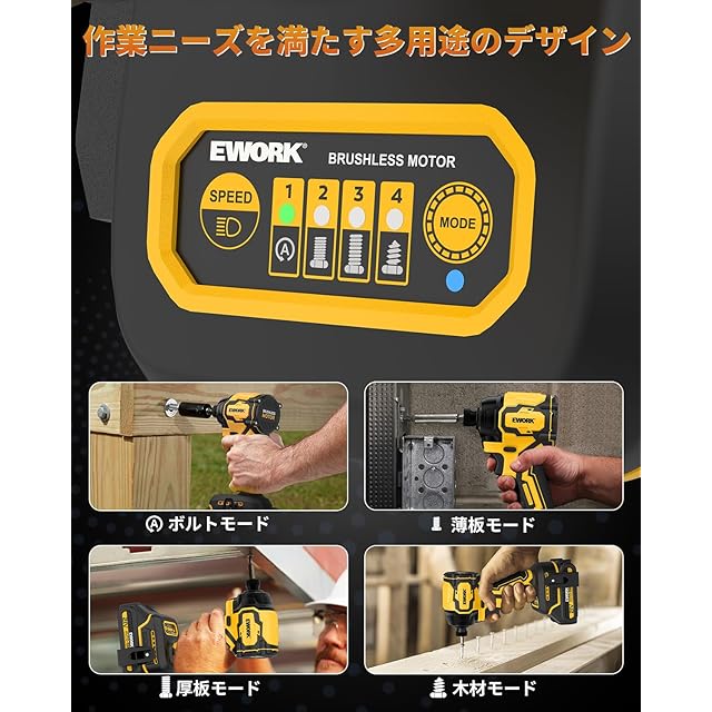✅[小さな体、大きな力]EWORKの新しいインパクトドライバーは、より強力なブラシレスモーターを搭載しています、稼働時間は 30% 増加し、最大トルク260N.m、無段変速で細かい作業から重作業まで対応!リバースオートストップ機能により、分解が容易になり、機械の磨耗が軽減され、マシンとの一体感が向上!