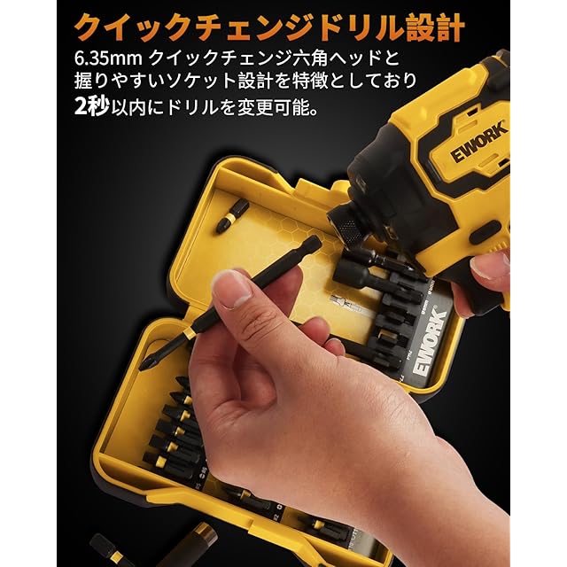 ✅[ドリルビットセット 29本セット]EWORKドリルビットセット29セットは、アクセサリのニーズを満たし!同時に、EWORK 電動インパクトドライバーは、6.35mm クイックチェンジ六角ヘッドと握りやすいソケット設計を特徴としており、片手でビットの取り付けと交換が簡単に行えます!