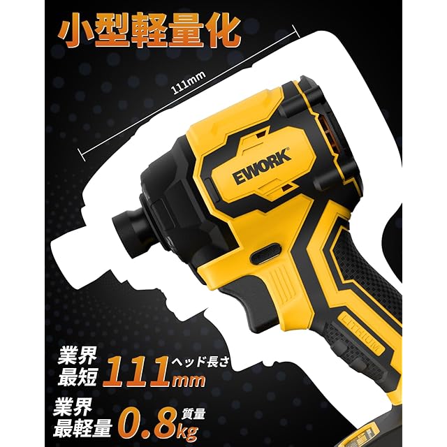 ✅[軽量設計]EWORK18V電動インパクトドライバーは新合金鋼素材を採用し、より頑丈で耐久性があり、長さ: 11cm、重さはわずか0.8kgで、コンパクトで軽量なデザインで、狭い場所での作業に適しており、保管も簡単です、人間工学に基づいたデザインを採用し、長時間の作業でも手に負担がかからず.