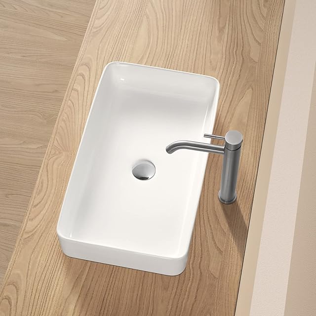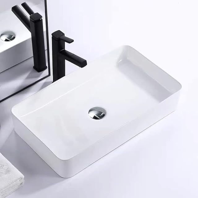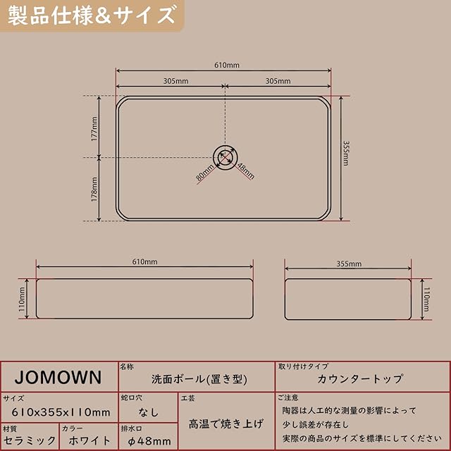 【JOMOWN限定排水セット付き】 大型 洗面ボウル おしゃれ 手洗いボウル 605*355*110mm 洗面ボール 置き型 陶器製 手洗い器 洗面台 (長方形)