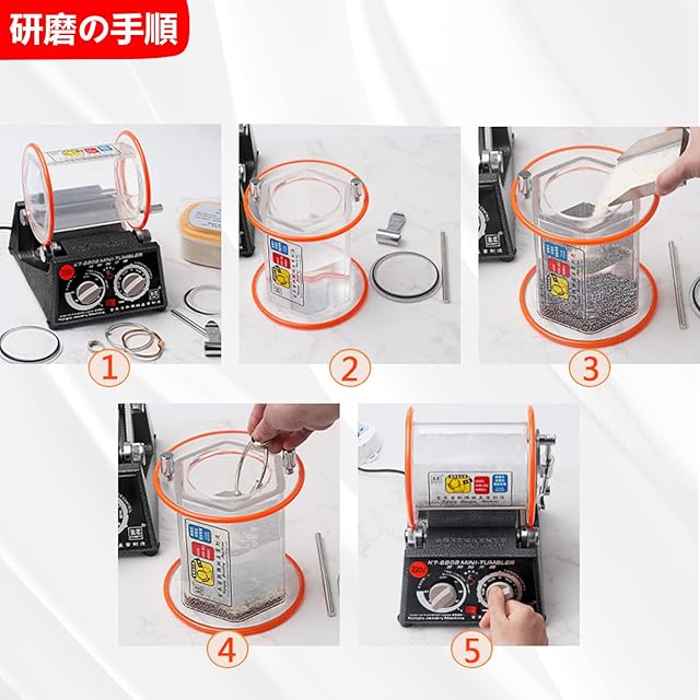 【高品質な研磨カートリッジ - 3kgの大容量】研磨シリンダーはプレキシガラスで作られ、透明なガラスは直接中の研磨状況を見ることができ、許可される最大容量は3kgで、容量は3.2kgを超えることができず、さもなければモーターを焼き切る、腐食性の液体は中に入れることができず、腐食性のある液体は研磨シリンダーにクラックが入りやすい。