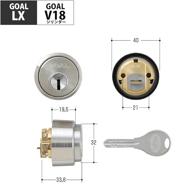 GOAL(ゴール) V18シリンダー LXタイプ GCY-211 キー3本付属 玄関 鍵 交換 取替え 扉厚33mm~42mm向け GCY211 AS・LX