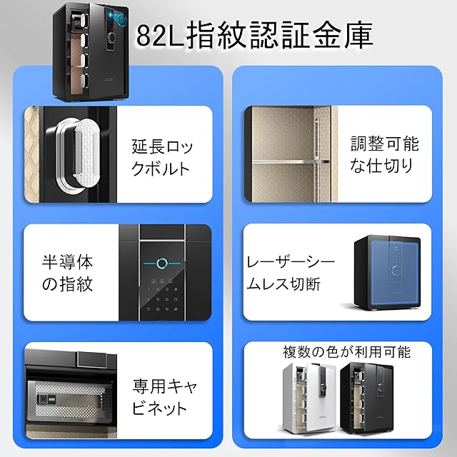 【3つのロック解除方法】指紋、暗証番号、緊急キーを使用して金庫を開けることができます、柔軟かつ便利な操作が可能です。指紋認証はわずか0.5秒で素早く応答し、スムーズな開閉を実現(指紋認証は最大20個まで登録可能で)。パスワードを忘れた場合や、バッテリー残量がなくなった時に操作できなければ、金庫は緊急キーを使えてロックを解除することができ、ロックを解除した後に暗証番号をリセットすることもできます。
