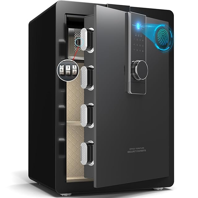 GIRGBE【強化版】超大 家庭用 指紋認証 暗証番号 82L 金庫 床・壁に固定可能 盗難防止 警報アラーム 保险柜 業務用/事務所/ホテル/店用/旅館 防犯金庫 A4 ファイル/宝石/貴重品/現金 保险箱 日本語取扱説明書付 ブラック 家庭用人気 safe (ブラック, 82L)