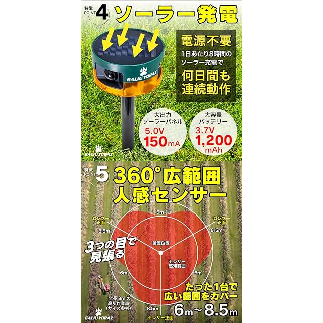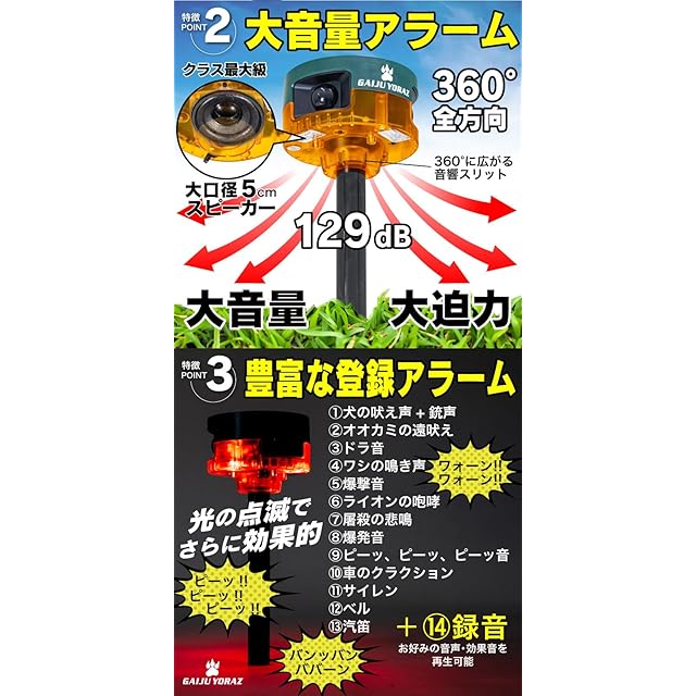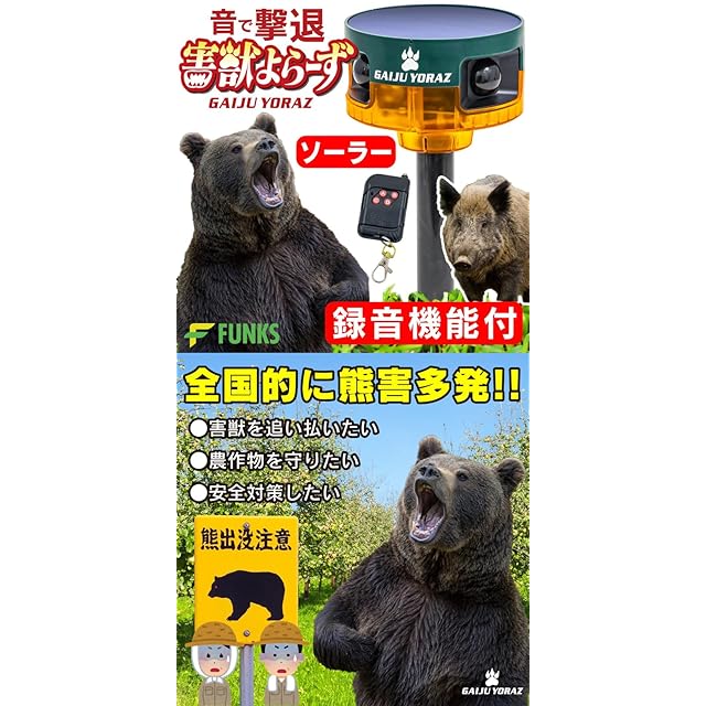 FUNKS 人感センサー アラーム 録音 屋外 害獣よらーず ソーラー 充電式 録音機能 害獣撃退器 熊 クマ 熊対策 猪 イノシシ