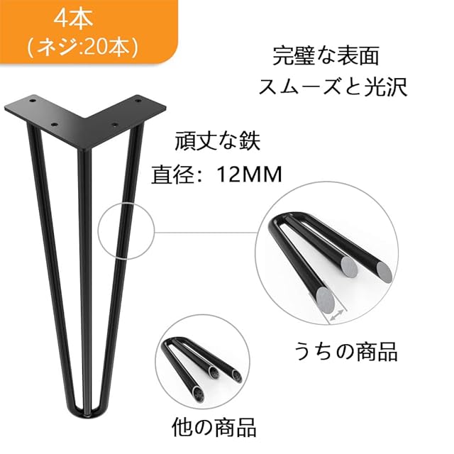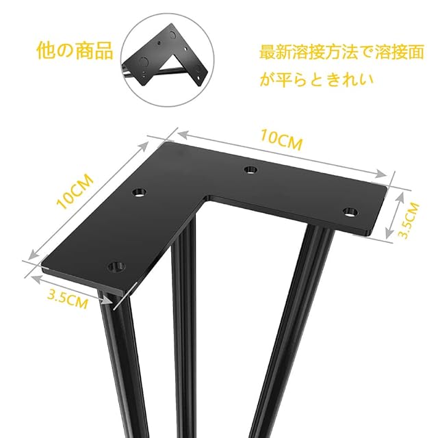 【商品詳細】材質:高品質炭素鋼;サイズ:(約)高さ71cm×幅12cm×奥行4.5cm;重量:(約)9kg (4本);カラー:ブラック;静電粉末スプレープロセスでペンキ剥がれないだけじゃなくて、防腐し、サビ防止し; [ご注意]:テーブル用天板は付属しません