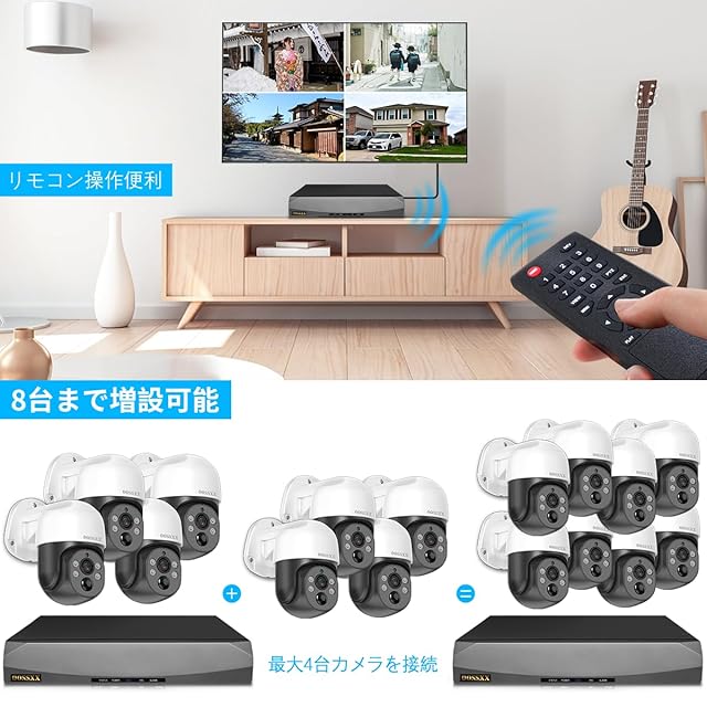 【4K800万画素・自動追跡・双方向通話・PTZ制御】 OOSSXX 有線 poe 防犯カメラセットランキング 屋外 poe給電 監視カメラ・録画機セット 4台 防犯カメラ 有線 屋外 適格請求書発行可(OSX-POE-PTZ80042T)